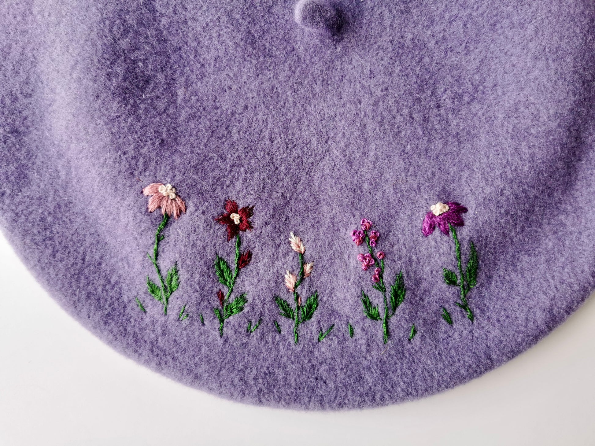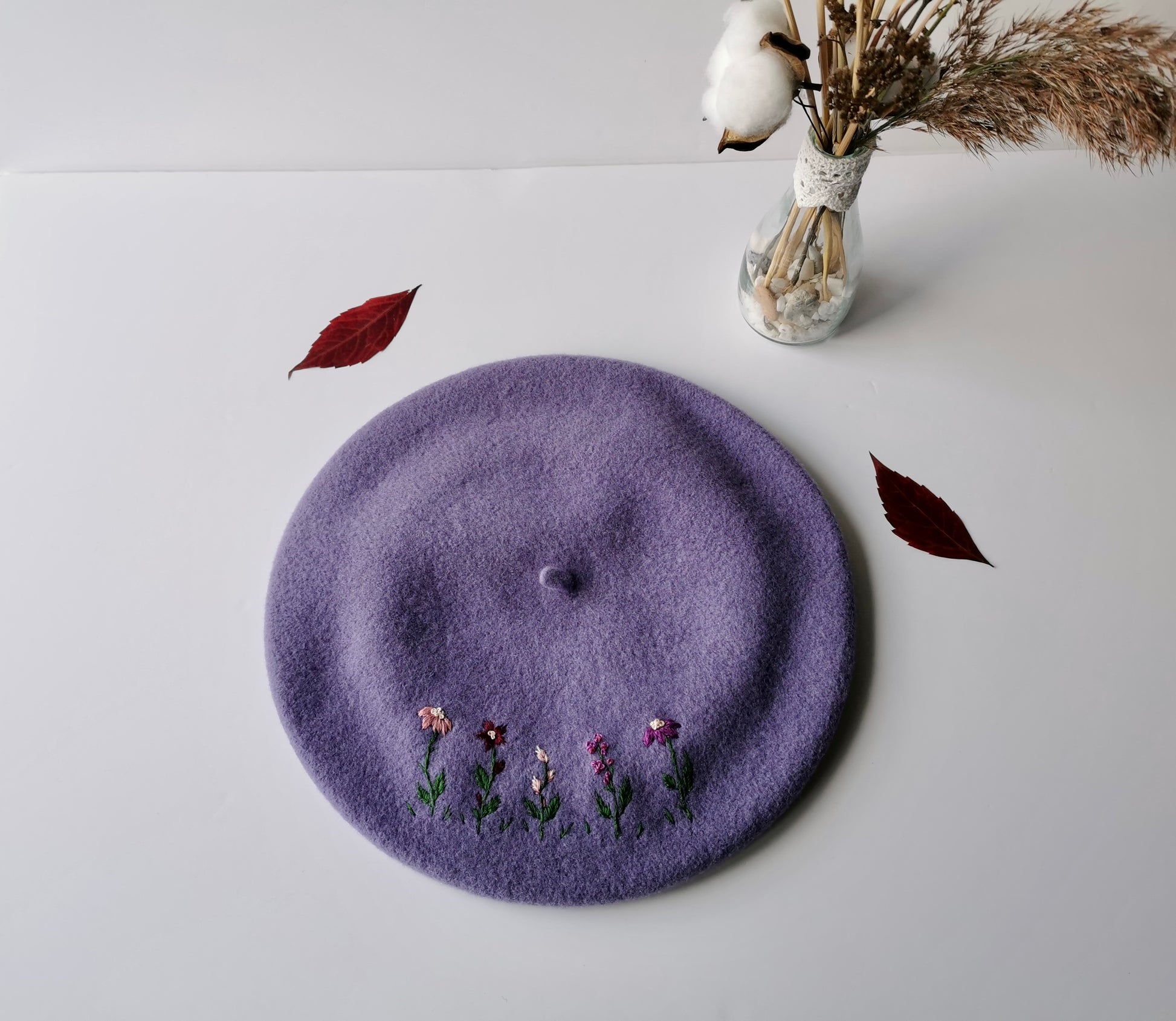 Bereta de lână 100 % brodată manual este un accesoriu elegant, care adaugă un strop de originalitate oricărei ţinute. Fiecare beretă frantuzească este un produs unic, realizat cu drag folosind tehnici speciale de broderie.