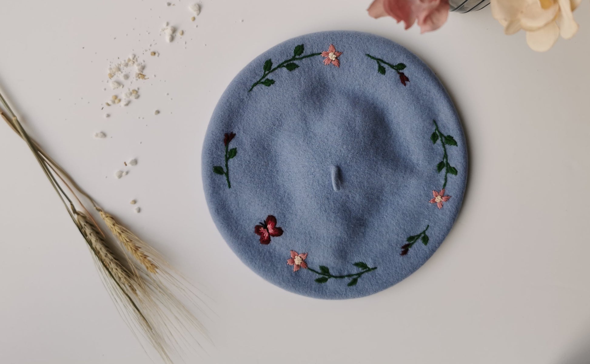 Beretă de lână 100 % brodată manual este un accesoriu elegant , care adaugă un strop de originalitate oricărei ţinute. Fiecare beretă frantuzească este un produs unic, realizat cu migală, folosind tehnici speciale de broderie.