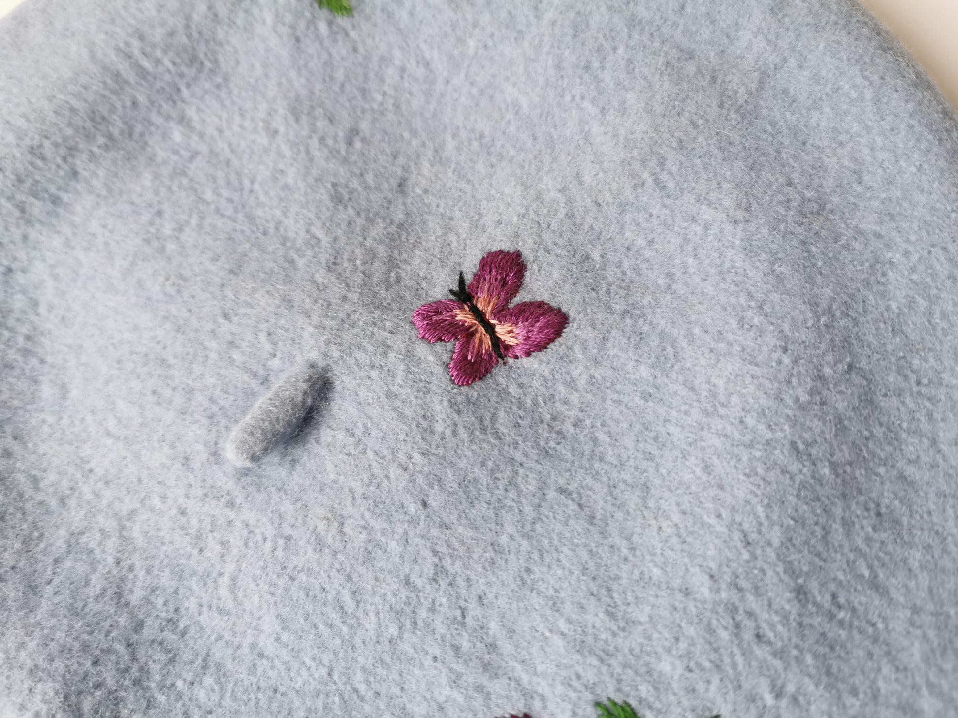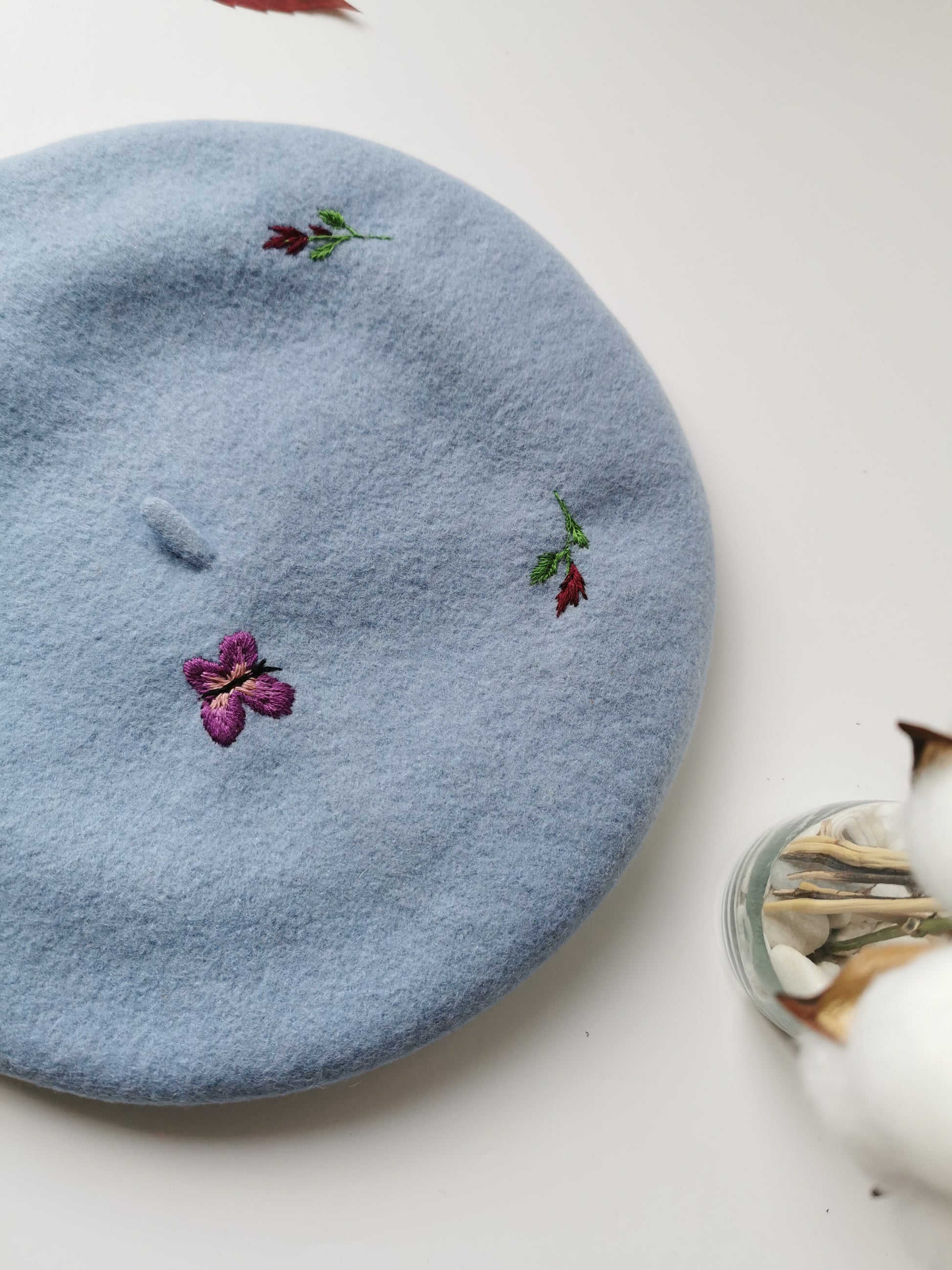 Bereta de lână 100 % brodată manual este un accesoriu elegant, care adaugă un strop de originalitate oricărei ţinute. Fiecare beretă frantuzească este un produs unic, realizat cu drag folosind tehnici speciale de broderie.