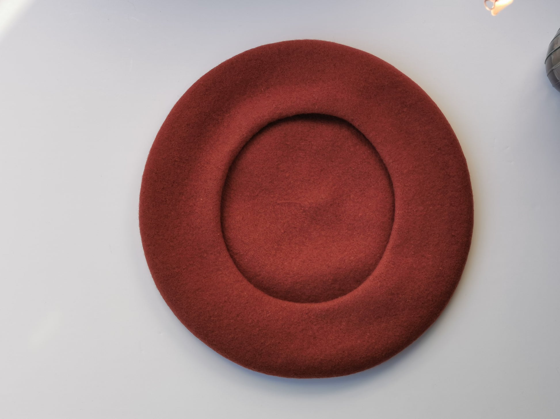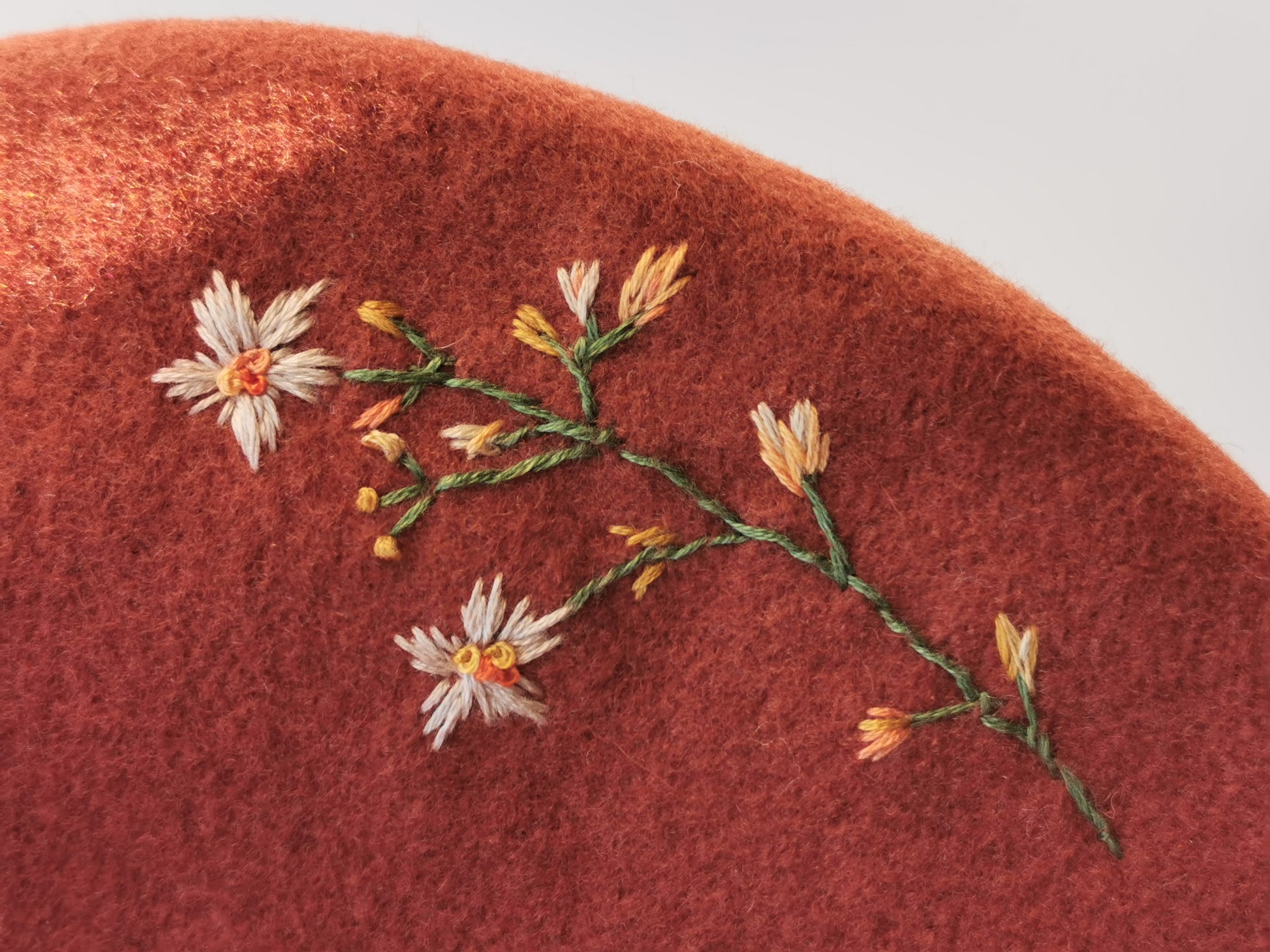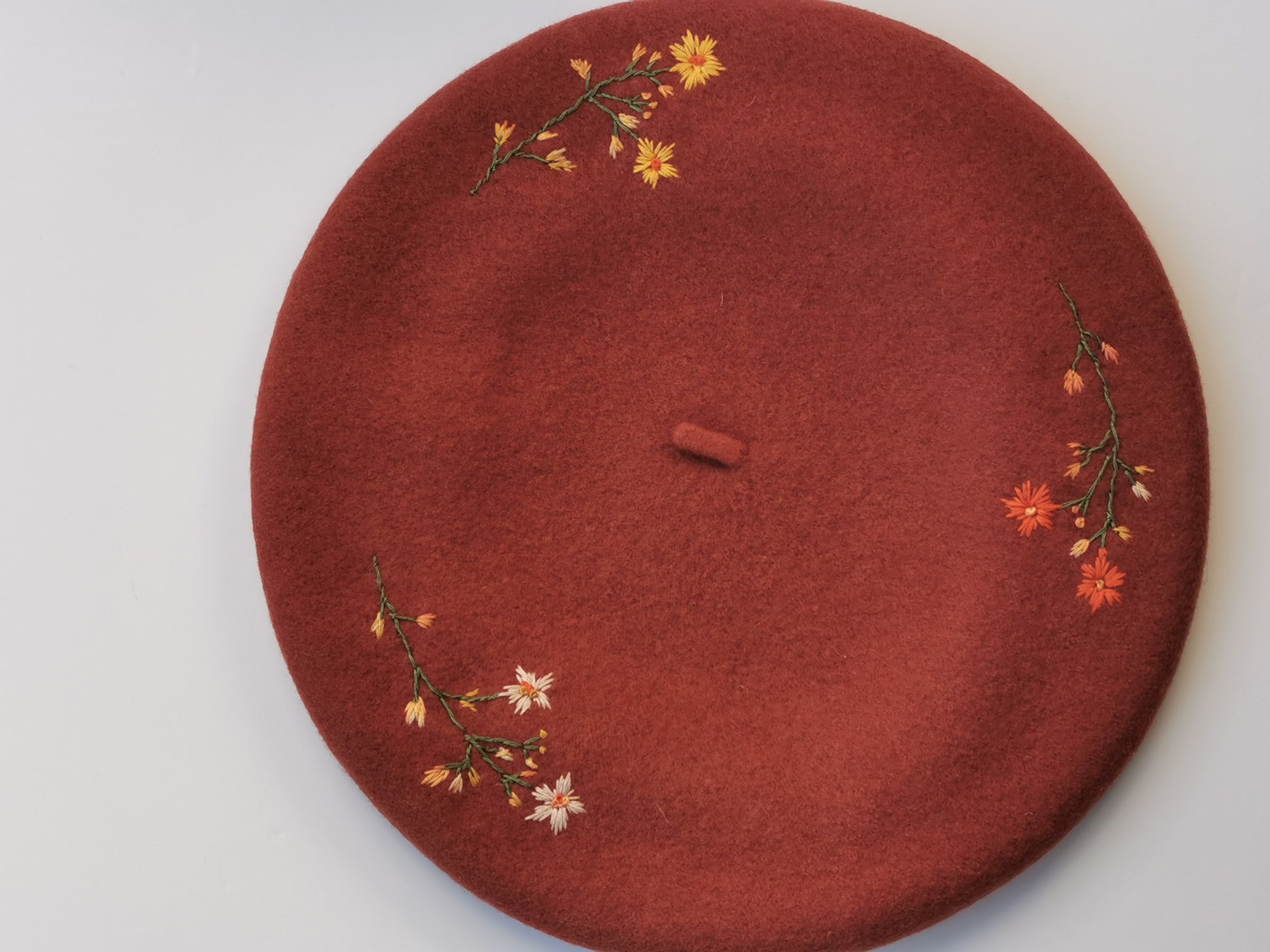 Beretă cărămizie brodată manual cu flori delicate