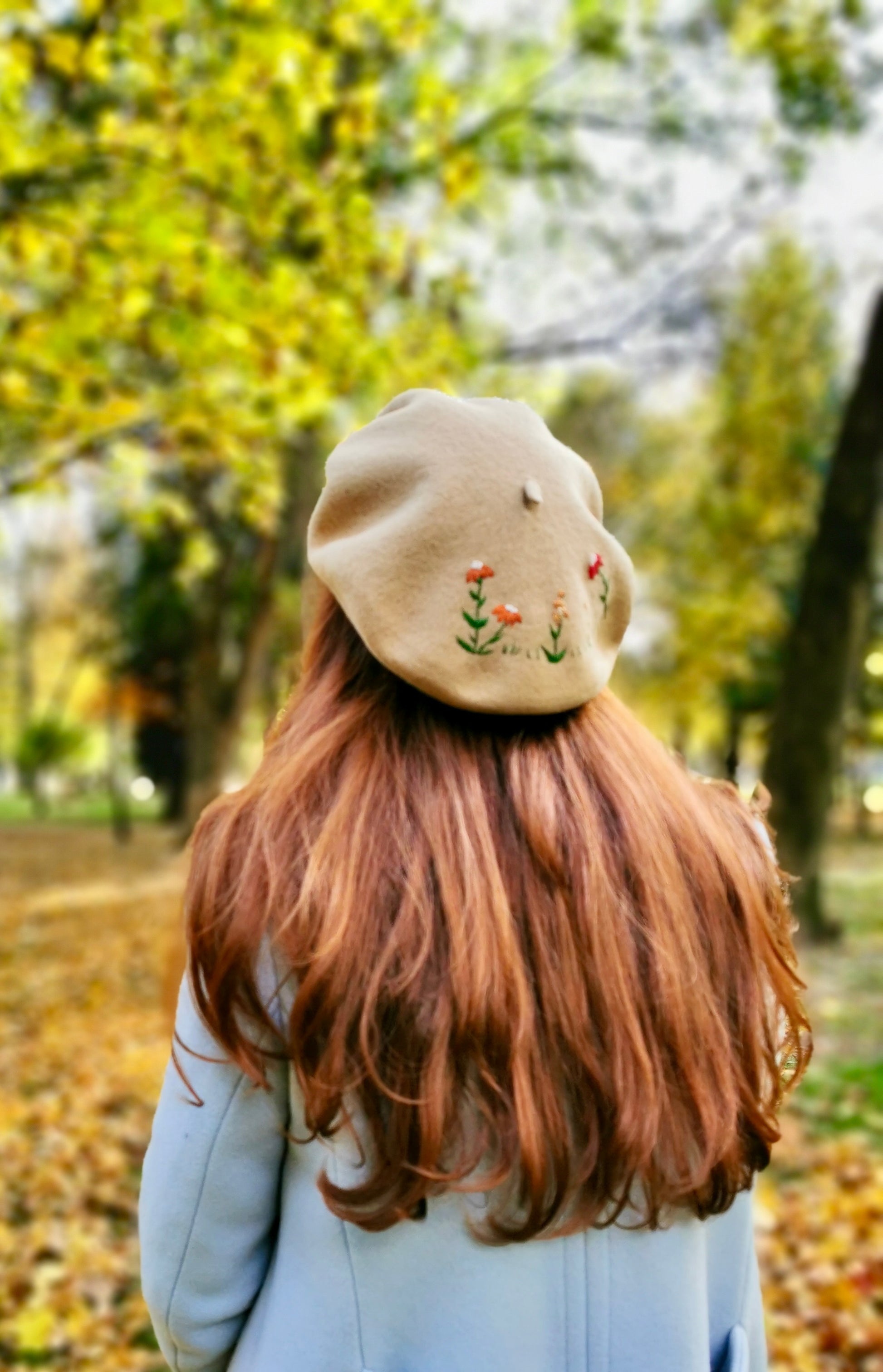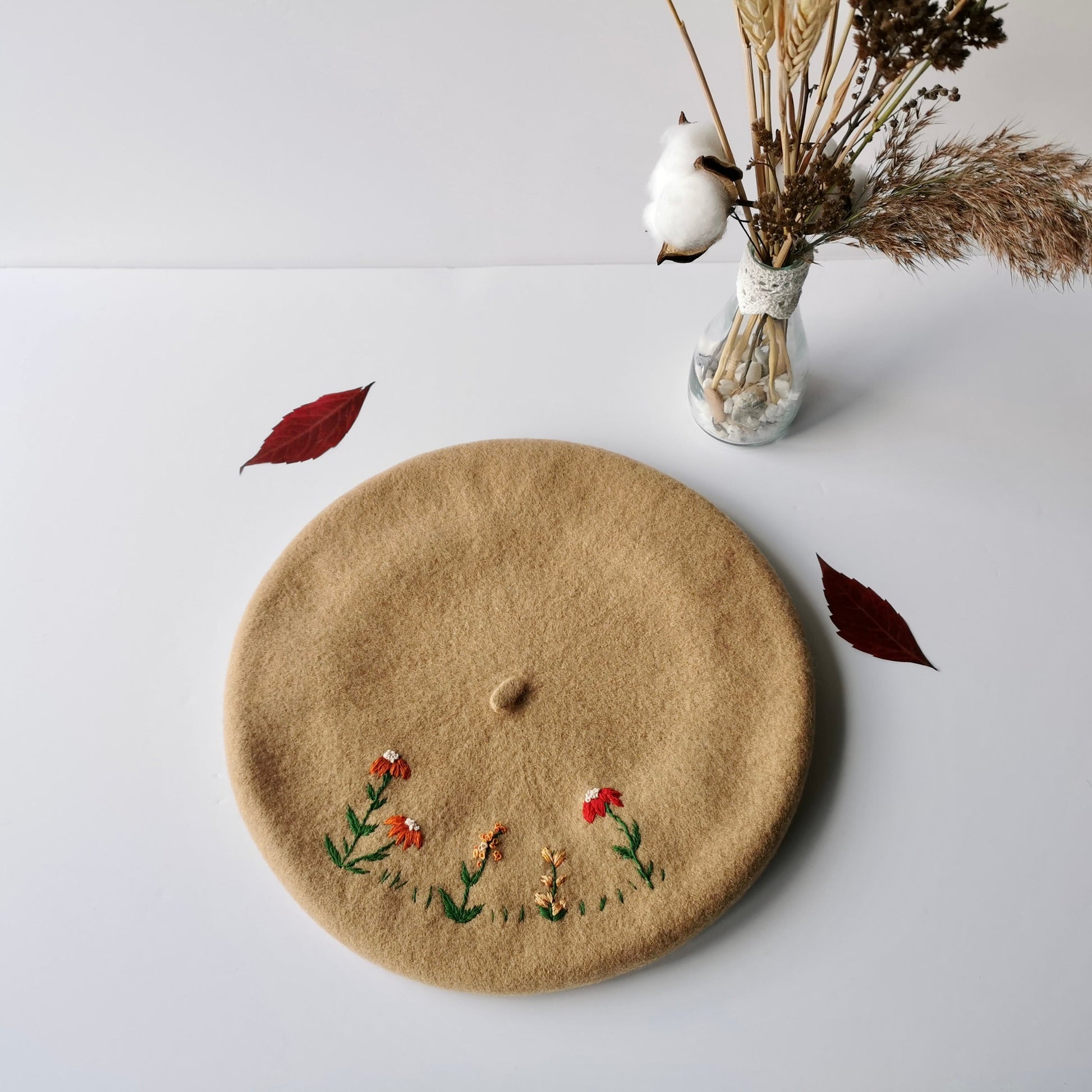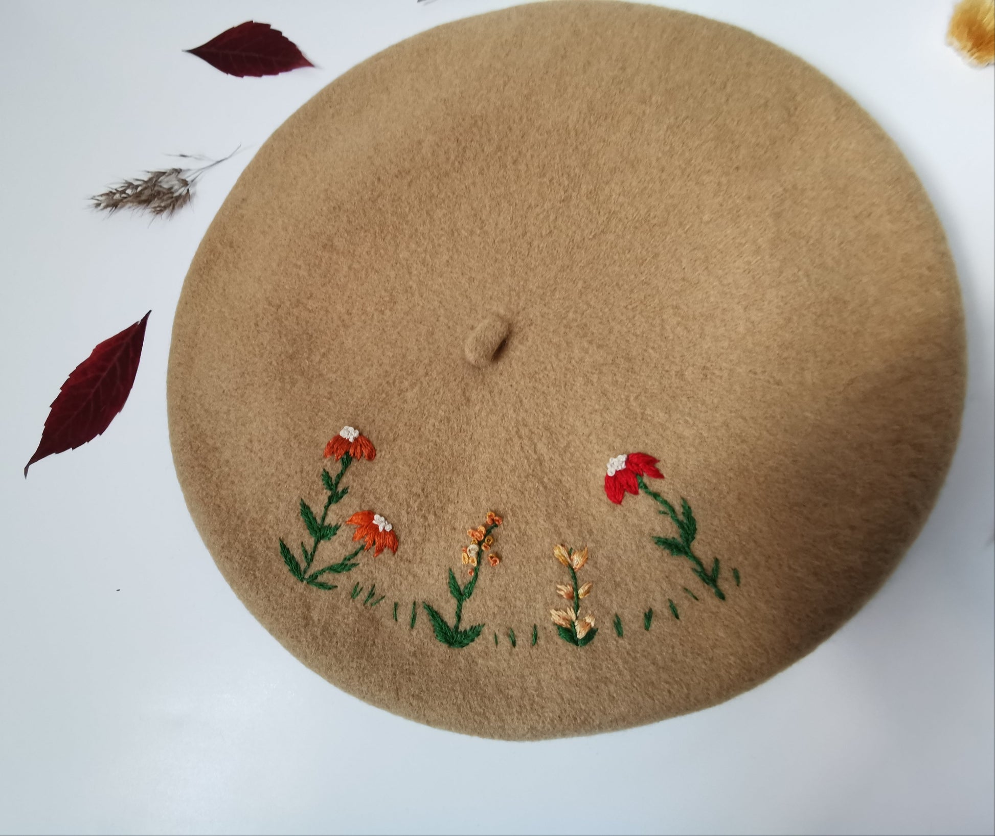 Bereta de lână 100 % brodată manual este un accesoriu elegant, care adaugă un strop de originalitate oricărei ţinute. Fiecare beretă frantuzească este un produs unic, realizat cu drag folosind tehnici speciale de broderie.