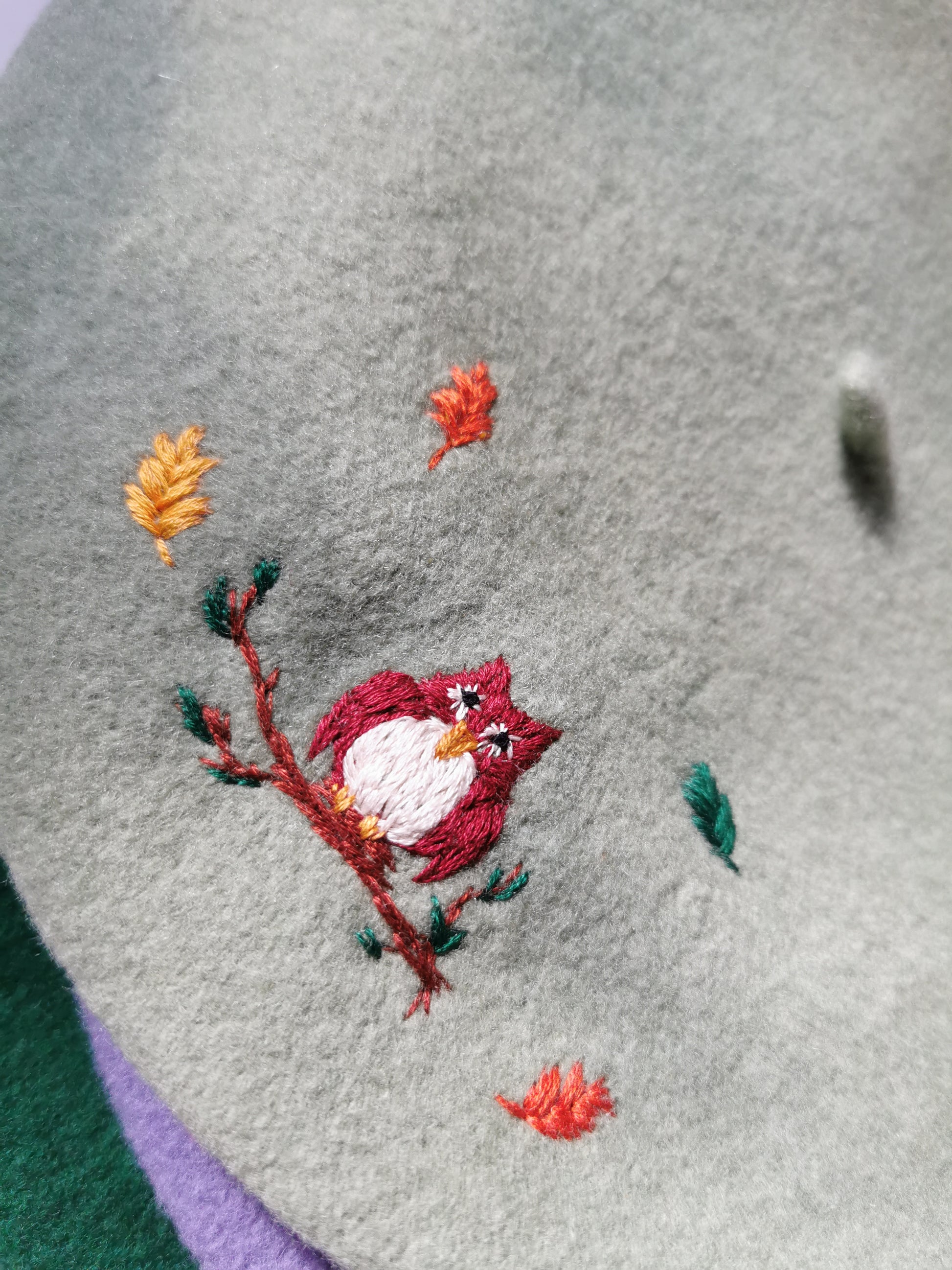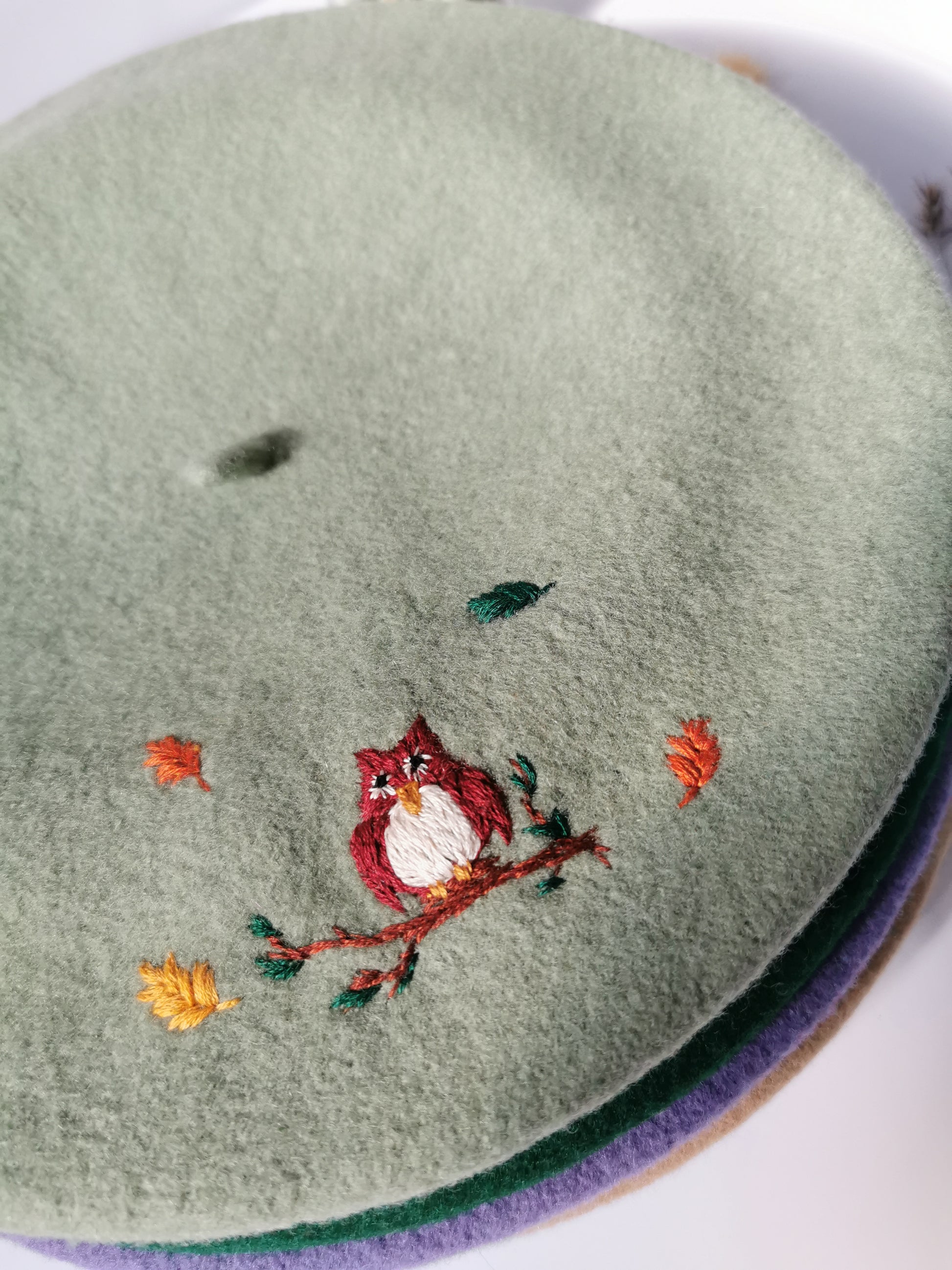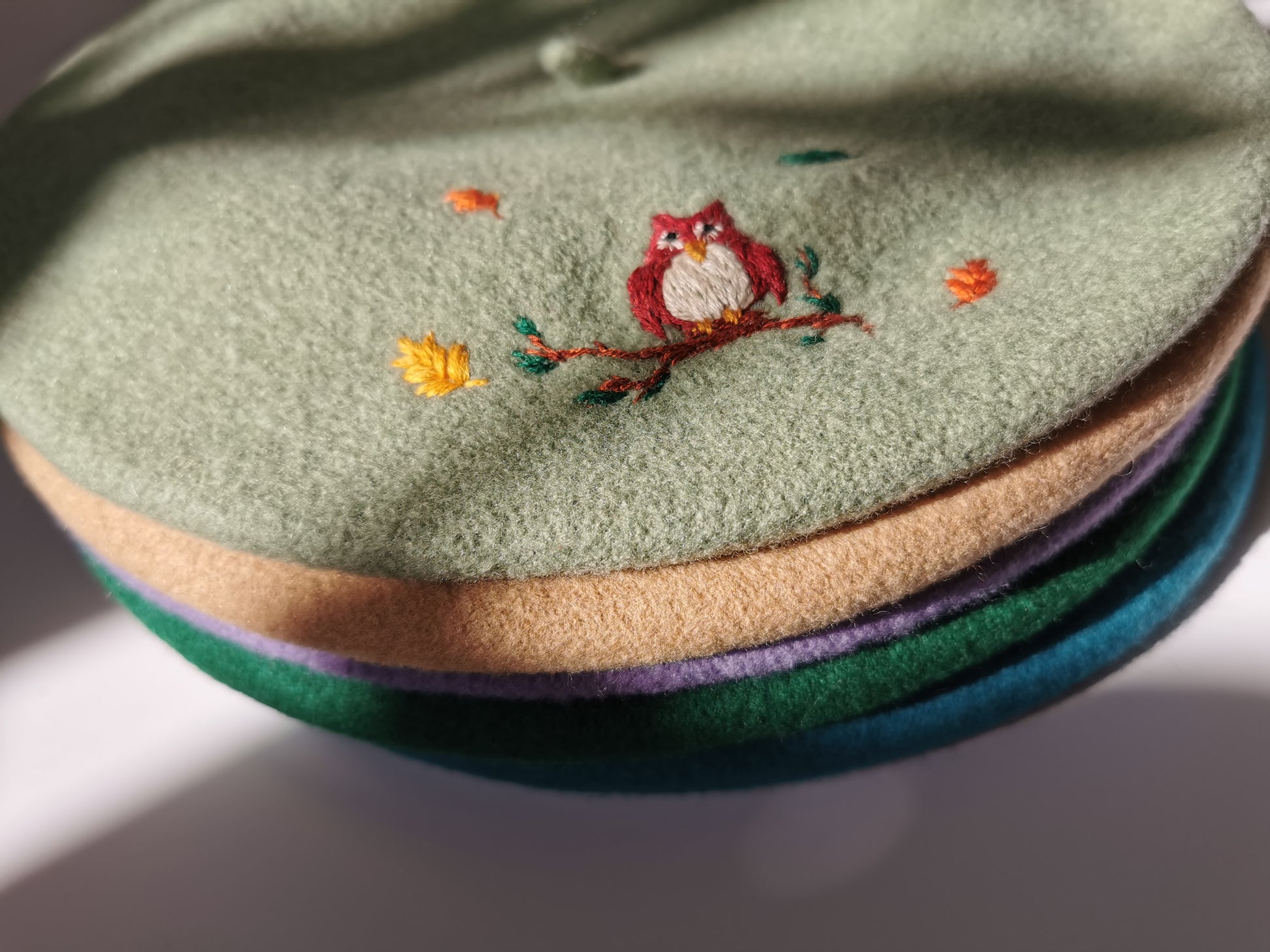 Bereta de lână 100 % brodată manual este un accesoriu elegant, care adaugă un strop de originalitate oricărei ţinute. Fiecare beretă frantuzească este un produs unic, realizat cu drag folosind tehnici speciale de broderie.