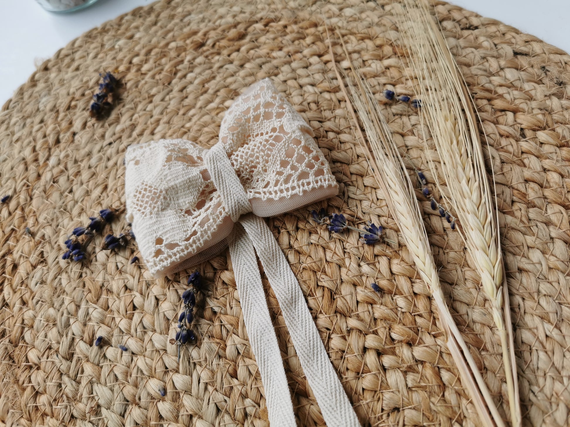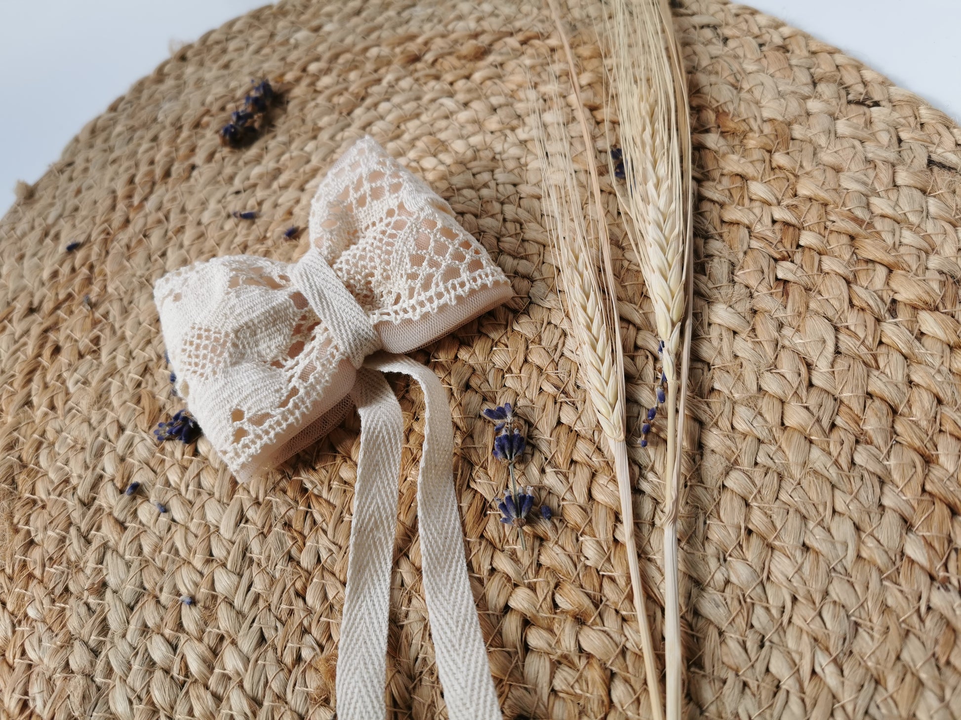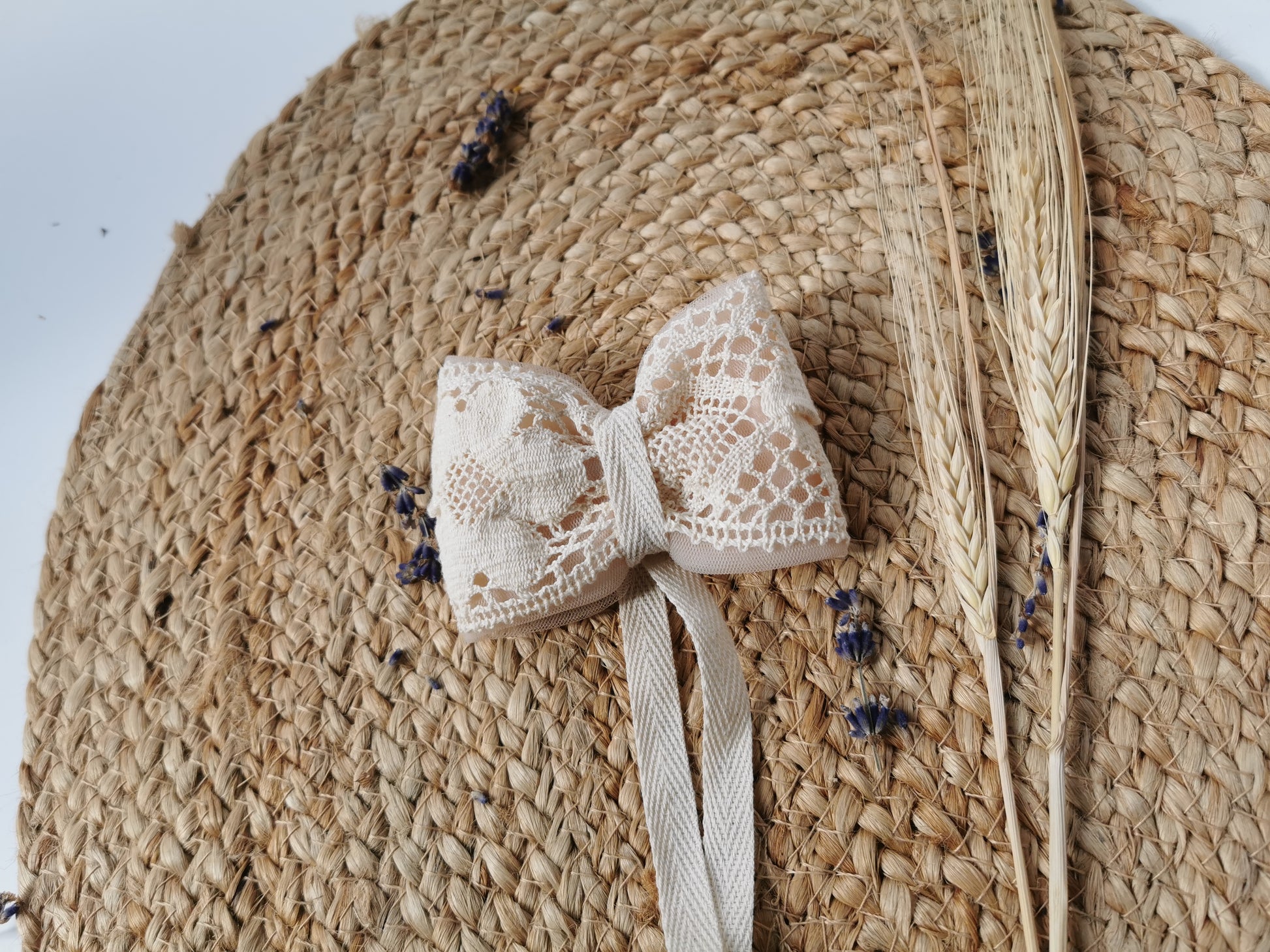 Fundă păr stil vintage Margaret confecţionată manual din dantelă crem din bumbac şi tulle roz. Acesta are ataşată o prinzătoare din oţel inoxidabil pentru păr etc. Ea se potriveşte cu broşele din noua colecţie dar şi cu alte tipuri de broşe.